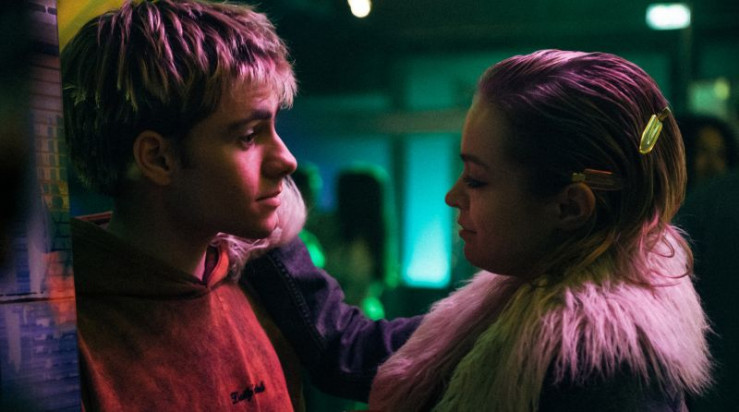 Corvin (Florian Geißelmann) beobachtet die Einweihungsparty des Jugendzentrums, als Jessy (Carlotta Weide) sich an ihn heranmacht.