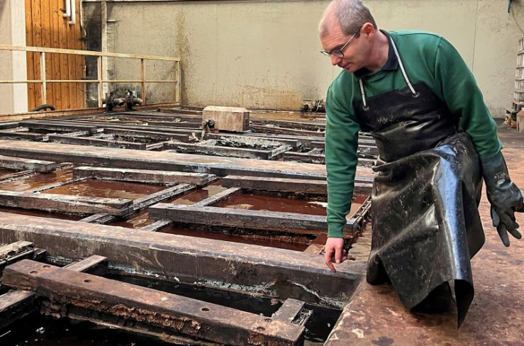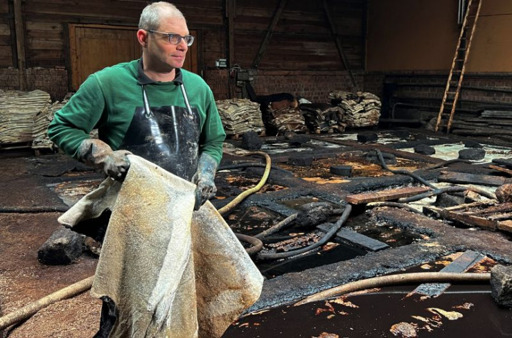 In riesigen, hölzernen Waschmaschinen gerbt Thomas Martin Leder mit Baumrinde und Wasser. Hier in Tuttlingen wird seit 400 Jahren Sohlenleder hergestellt.