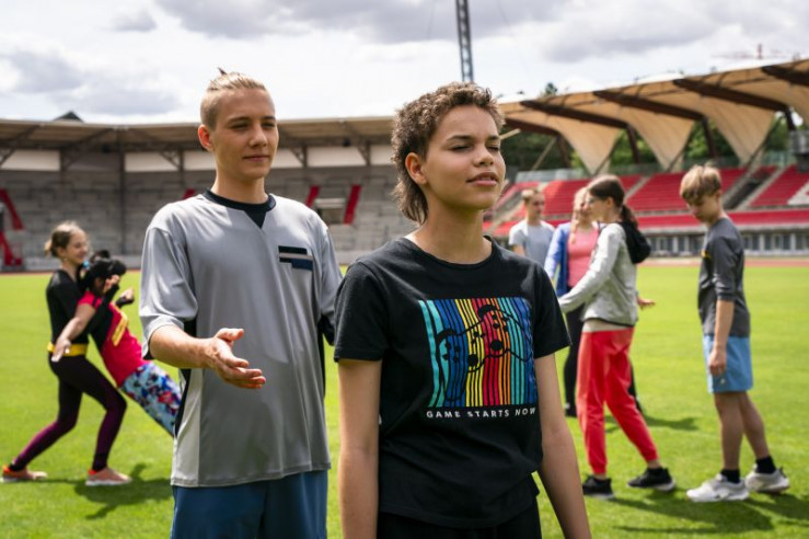 Marlon (Matti Schneider, li., mit Merle Sophie Eismann) ist verliebt, doch weiß nicht, ob es seinem Crush genauso geht.