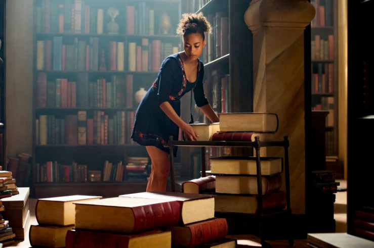 Kyra (Kimie Tsukakoshi) hat in der Bibliothek der Magie einen Stapel alter Bücher entdeckt. Vom obersten Buch wird sie magisch angezogen.