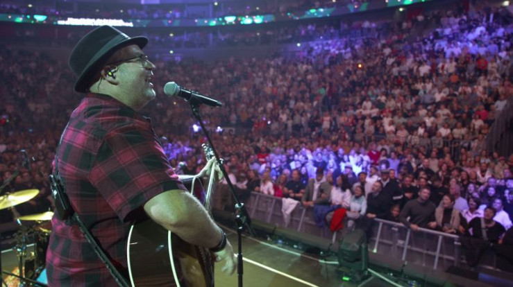 Mitsingpapst Björn Heuser in der Lanxess Arena