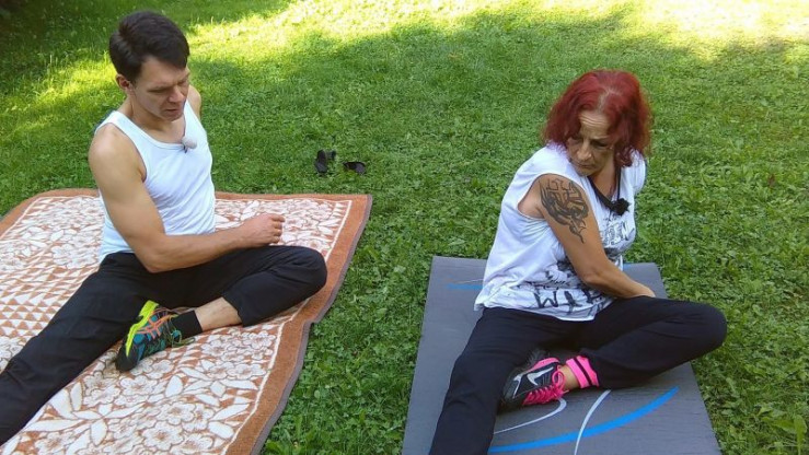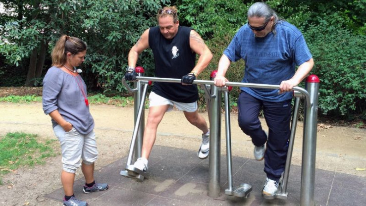 Tauschfrau Miraim mit Sven (Mitte) und Daniel beim Sport