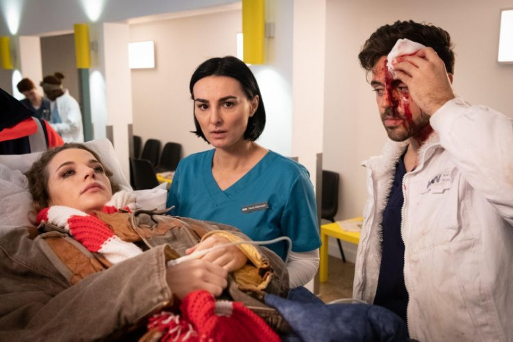 Nora (Mimi Fiedler, M.) ist völlig schockiert, als Lea (Magdalena Höfer) und Karim (Nassim Avat) in der Notaufnahme ankommen.