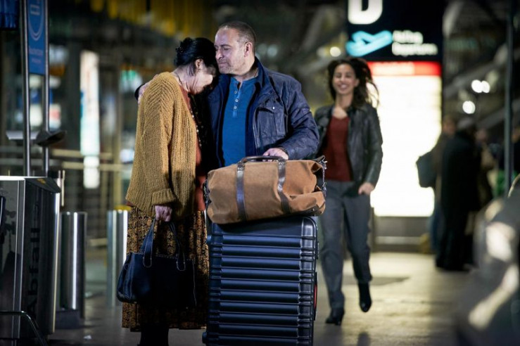 Semir (Erdogan Atalay) kommt mit seiner Mutter Selma (Özay Fecht, l.) endlich am Flughafen in Köln an. Sie werden von Dana (Gizem Emre) überglücklich empfangen.