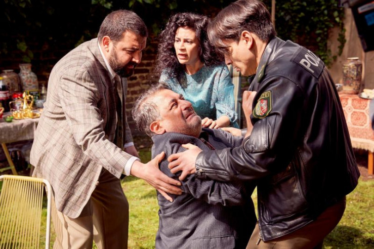 Rückblende (1993): Der 24-jährige Semir (Yasin Boyunince, r.) kommt auf den 50sten Geburtstag seines Vaters Abdulkabir (Hasan Ali Mete, Mi.). Doch Semir ist unerwünscht auf dem Fest seines Vaters. Das Fest endet während eines Streits zwischen Vater und Sohn mit dem tragischen Herztod des Vaters. l.: Ömer (Sahin Eryilmaz), hinten: Selma (Pina Erincin)