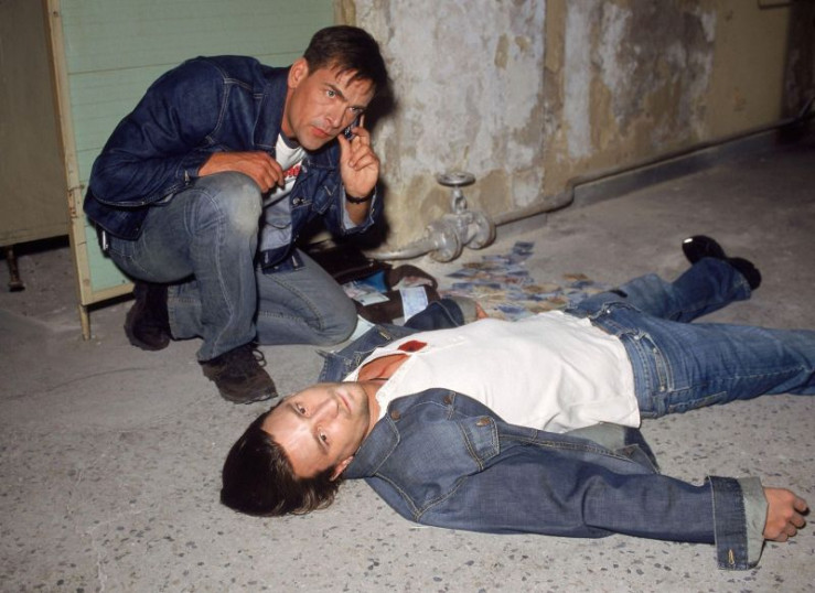 Kriminalkommissar Bonhoff (Wolfgang Krewe, li.) findet den erschossenen Heiko Prinz (Axel Wedekind).