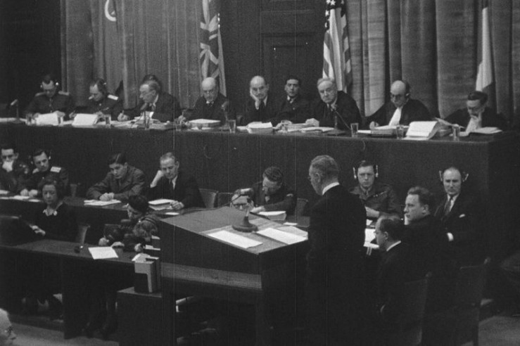 Die Anwälte präsentieren die Beweismittel gegen die Nazi-Verbrecher bei den Nürnberger-Prozessen.