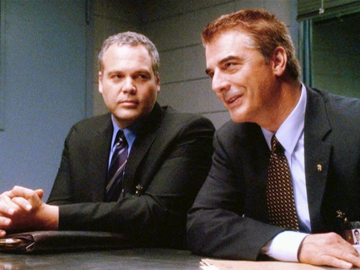 Detective Goren (Vincent D'Onofrio, l.) verhört mit seinem Kollegen Detective Logan (Chris Noth) einen Tatverdächtigen. +++ Die Verwendung des sendungsbezogenen Materials ist nur mit dem Hinweis und Verlinkung auf RTL+ gestattet. +++