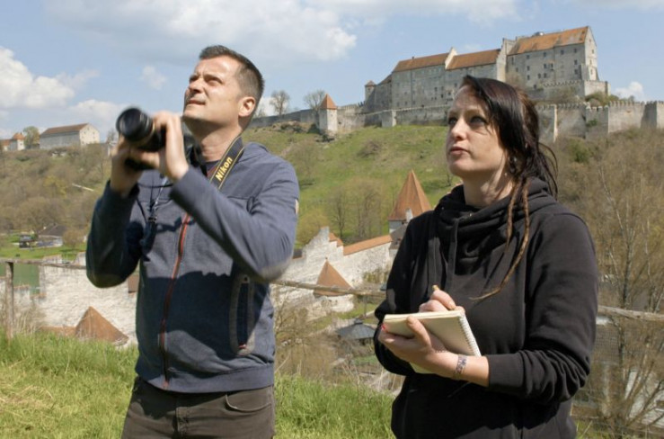 Oliver Habel und Corinna Esterer vom Waldrappteam überwachen den Nistplatz in Burghausen.