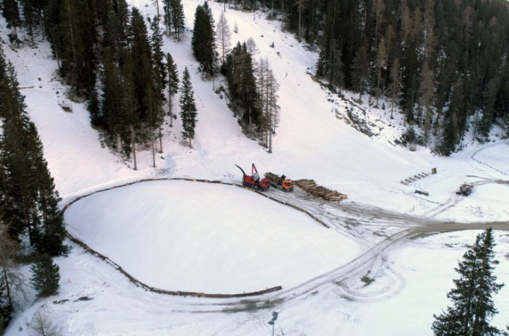 In St. Moritz wird zum ersten Mal Snowfarming betrieben. Durch den heißen Sommer ist der Schneehügel aus recyceltem Schnee geschmolzen.