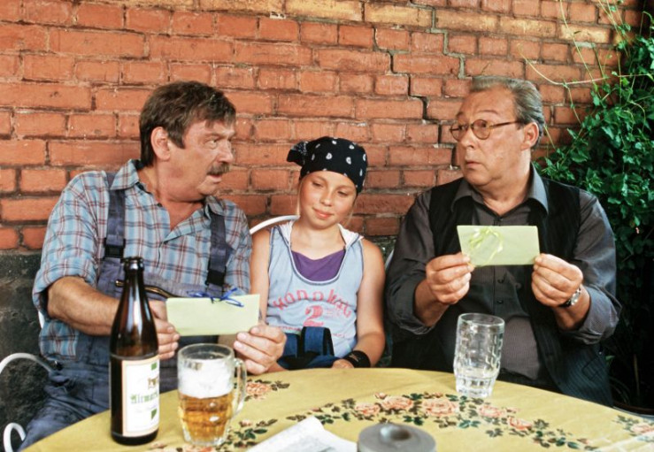 Günther (Wolfgang Winkler, links) und Erwin (Jaecki Schwarz) versuchen die Ehe der Eltern ihrer Enkelin Charlotte (Laura Borlein) zu retten.