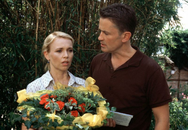 Ein Blumenstrauß stiftet Verwirrung zwischen Paula (Tina Ruland) und ihrem Mann Thomas (Timothy Peach).