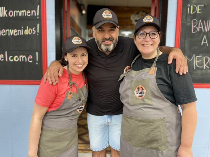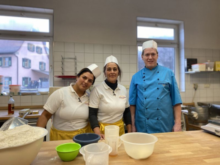 Chef Roland Streicher und seine argentinischen Tauscharbeiterinnen Mariela (links) und Viviana (rechts).