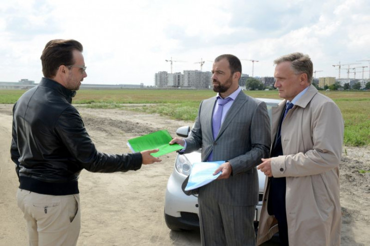Das Autobahnprojekt soll vorzeitig in den Ministerrat, was die Herren rund um den illegalen Immobiliendeal in Aufruhr geraten lässt. Im Bild (v.li.): Hadrian Melzer (Bernhard Schir), Georg Schneider (Juergen Maurer).