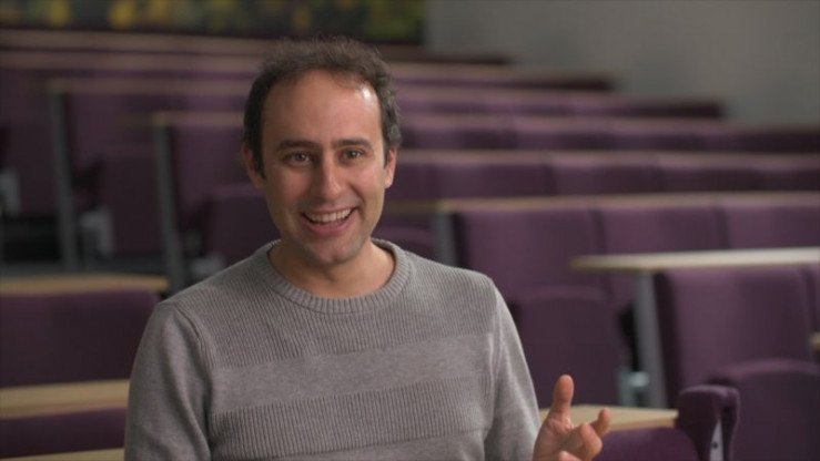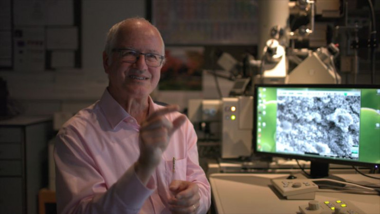 Professor Mike Benton erforscht die Farben von Dinosauriern mit Hilfe eines Rasterelektronenmikroskops an der Universität Bristol.