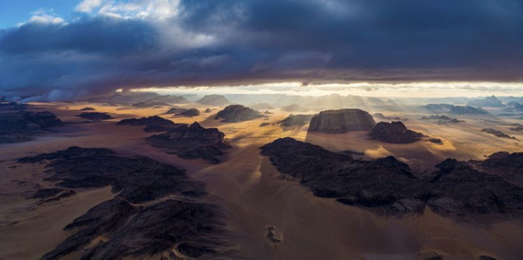 Der zweite Reiseteil führt auf die Arabische Halbinsel, die größte Halbinsel der Erde und als eines der größten Wüstengebiete in weiten Teilen unbewohnbar. In Jordanien fotografiert Michael Martin die spektakuläre Landschaft der Wadi Rum. Im Oman geht er in der größten Sandwüste der Erde, der Rub Al Khali, auf Bilderjagd. Ihre 300 Meter hohen Dünen verlangen dem renommierten Wüstenfotografen beim Befahren starke Nerven, und beim Besteigen mit 40 Kilogramm Kameraausrüstung gute Kondition ab.