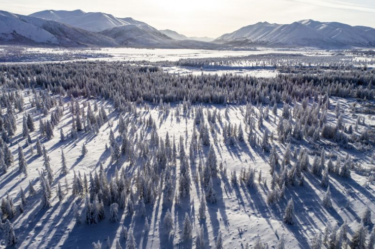 Drohnenaufnahme der Taiga im nordostsibirischen Jakutien.