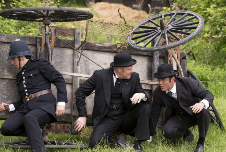v.l.n.r.: Constable George Crabtree (Jonny Harris), Inspector Thomas Brackenreid (Thomas Craig), Detective William Murdoch (Yannick Bisson)