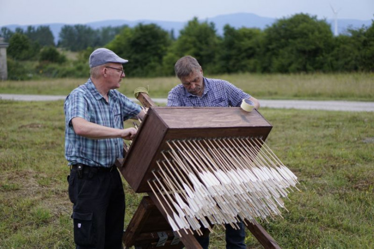 Der Kriegshammer ist im Mittelalter eine der wenigen Waffen, die dem Ritter gefährlich werden können. Experte Mike Loades demonstriert den Kriegshammer in der Waffenkammer des Middelaldercentret (Dänemark).