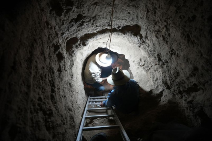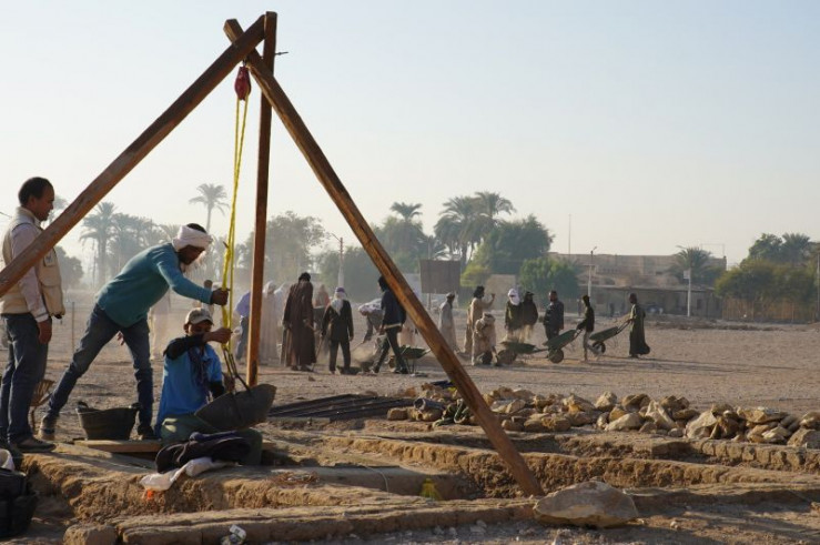 Mit Hilfe von einfachen Flaschenzügen leeren die Arbeiter die mit sandverfüllten senkrechten Schächte der Gräber. Der neuentdeckte Friedhof im sogenannten Dreieck ist eher ungewöhnlich für Theben, da die meisten Gräber dort in den Hängen des Westgebirges angelegt wurden, nicht in der Ebene.