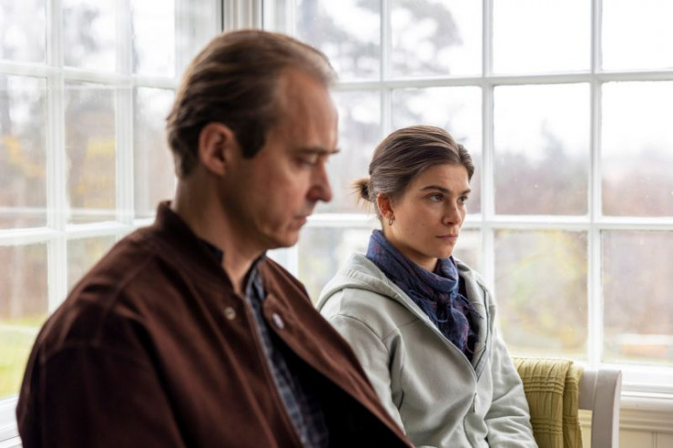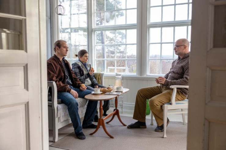 Bei einem angeblichen Therapeuten (Per Graffman, r.) will Tommy (Jonas Karlsson, l.) Agnes (Tehilla Blad, M.) aus der Reserve locken.