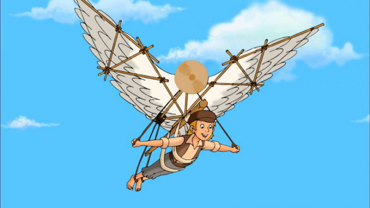 Liam (r.), Bibi (M.) und Margie (l.) überlegen gemeinsam, wie sie den Flugapparat verbessern können.