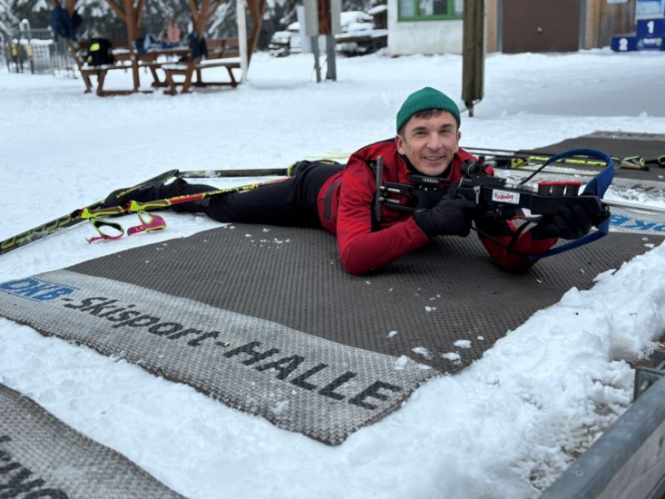 Laufen, zielen, schießen: "PUR+" Moderator Eric Mayer probiert Biathlon. Wie schafft man innerhalb weniger Sekunden den Umstieg von ultraschnellem Ski-Langlauf auf Ruhe und Treffsicherheit?