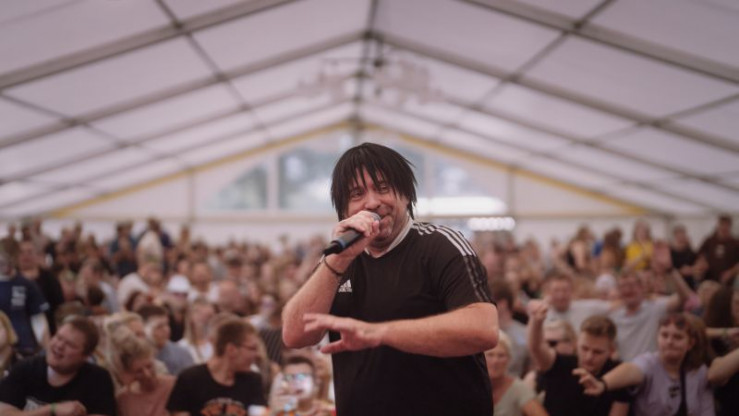 Auch Matthias Distel ist auf diesen Veranstaltungen unterwegs. Der Geschäftsführer von Summerfield Records schlüpft dann in die Rolle von Ikke Hüftgold, dem Partyschlager-Proleten vom Dienst. Seine Markenzeichen sind eine schwarze Perücke, ein Trainingsanzug und der erhobene Mittelfinger beim Betreten der Bühne. Auf 160 Festen pro Jahr gibt Ikke Hüftgold seine Gesangsweisen zum Besten: "Ich überleg', mit dem Saufen aufzuhören, oho. Aber ich schwanke noch", "Dicke Titten, Kartoffelsalat" oder "Heute sind wir wieder bumsbar". Pro 45-Minuten-Show bekommt er zwischen 20.000 und 30.000 Euro. Im Jahr macht er damit 1,5 Millionen Euro. Gut bezahlt, aber ein Knochenjob, denn manchmal sind es drei Auftritte an einem Tag - inklusive Fahrten von 1000 Kilometern.