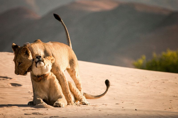 Das Trockengebiet Kaokoveld liegt zwischen den orangefarbenen Dünen der Namib, den einsamen Stränden der Skelettküste und den felsigen Schluchten des Kunene-Flusses. Auf der Jagd nach Beute legen die Löwen lange Strecken zurück, denn auch Antilopen und Gazellen sind ständig unterwegs auf der Suche nach dem spärlichen Grün in dieser kargen Landschaft. Die lebensfeindlichen Bedingungen, aber auch der Vormarsch von landwirtschaftlichen Industrien, haben den Bestand dieser einzigartigen Tiere gefährdet.