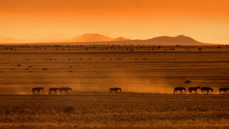 Ausgerechnet diese Wildnis, die von Sonne, Sand und Sturm geprägt wird, ist Heimat von Afrikas einzigen Wildpferden. Umgeben vom malerischen Fischfluss-Canyon und dem stürmischen Atlantik breitet sich die Namib mit Trockengebieten, Sandwüsten und Savannen aus.