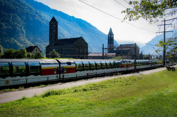 Vom malerischen Vierwaldstättersee reist der "Gotthard Panorama Express" durch den alten Gotthardtunnel Richtung Süden. Auf seinem Weg nach Lugano bietet der Panoramazug beeindruckende Ausblicke auf die sonnenverwöhnten Dörfer und Landschaften des Tessins.