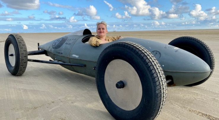 Mia Strandgaard will das historische Hotrod-Rennen auf Rømø unbedingt gewinnen - in ihrem "Belly-Racer", zusammengebaut aus einem alten Flugzeugtank.