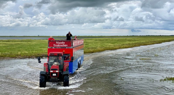 Auf die Insel Mandø kommt man nur mit dem Traktorbus - im Takt der Tiden.