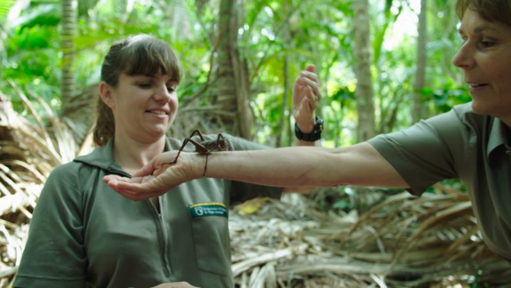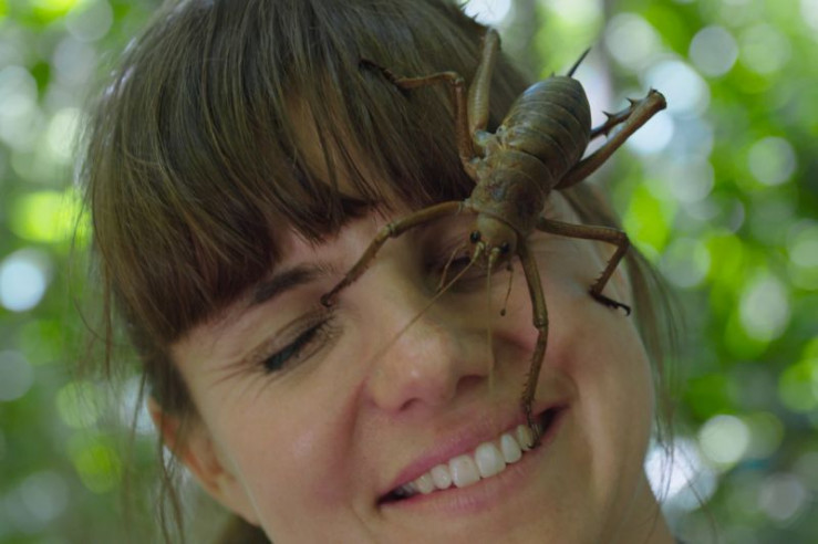 Die Mitarbeiterinnen des "Department of Conservation" erleben auf "Little Barrier Island" hautnah, dass das schwer gepanzerte Insekt, obwohl es bedrohlich aussieht, ein sanfter Riese ist.