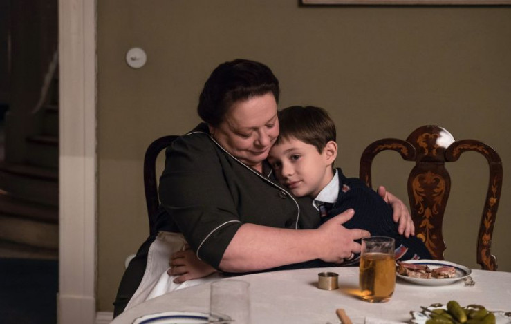Franz (Fritz Karl) muss schlucken, als seine Frau an Heiligabend erst nach der Christvesper nach Hause kommt, die Söhne Frieder (Joshio Marlon), Hubert (Lior Kudrjawizki) und Franz (Aaron Wolff) sowie Haushälterin Martha (Martina Eitner-Acheampong).