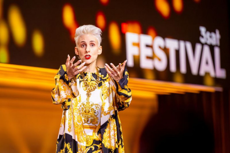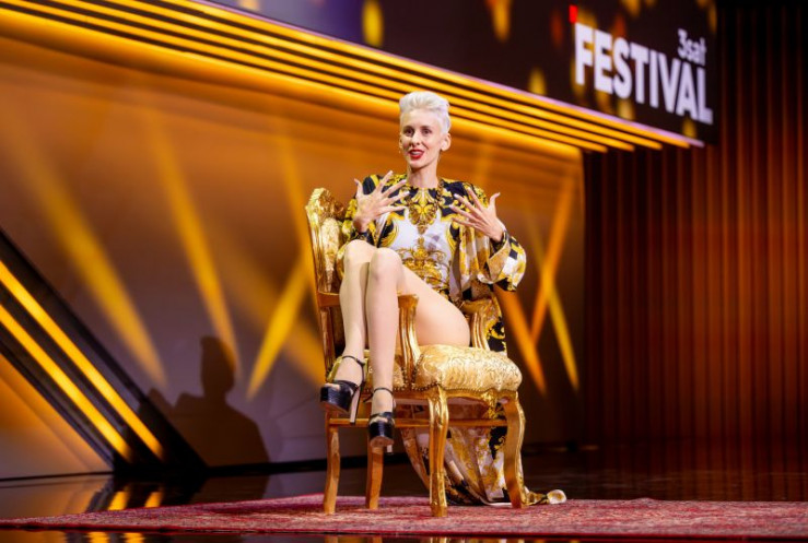 Lisa Eckhart feiert zehn Jahre Bühnenherrschaft als "Kaiserin Stasi die Erste" - eine Fusion aus Stalin und Sisi. Hier trifft Pathos auf Politsatire und gibt eine Audienz im 3sat-Zelt.