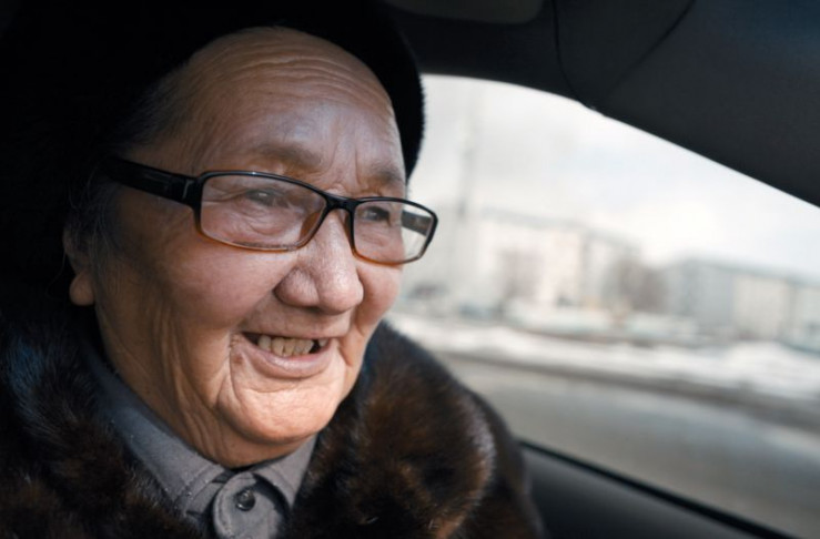 Die Taxi-Oma Orazkhan Manabayeva lässt sich auch von Glatteis, den Wehwehchen des Alters und einem klappernden "Eisenpferd" nicht aus der Spur bringen.