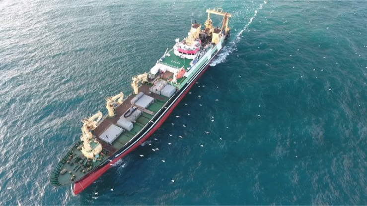 Der frisch gefangene Fisch wird direkt auf dem Trawler verarbeitet und verpackt.