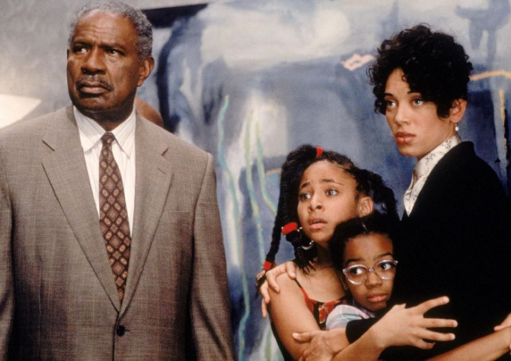 Dr. Dolittle's Vater Archer (Ossie Davis, l.) seine Frau Lisa (Kristen Wilson, r.) und seine Töchter Charisse (Raven Symoné, 2.v.l.) und Maya (Kyla Pratt) reagieren sehr überrascht auf die Tatsache, dass er mit Tieren sprechen kann.