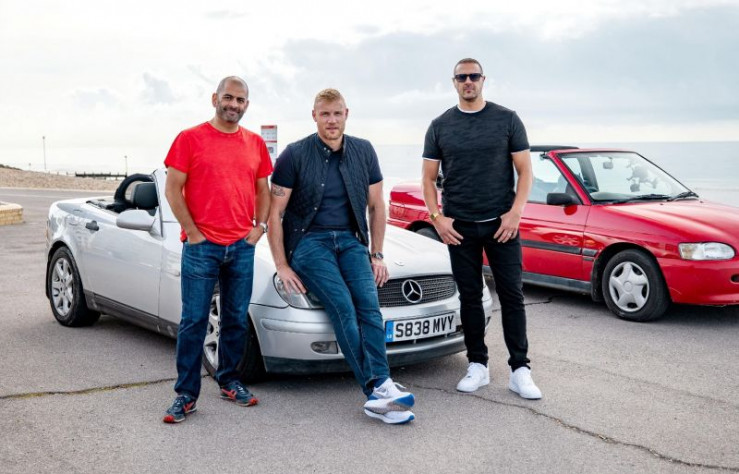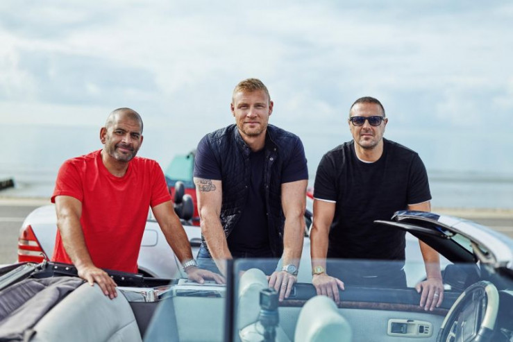 V.l.: Chris Harris, Paddy McGuinness, Freddie Flintoff