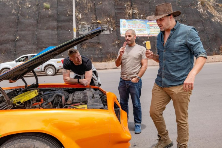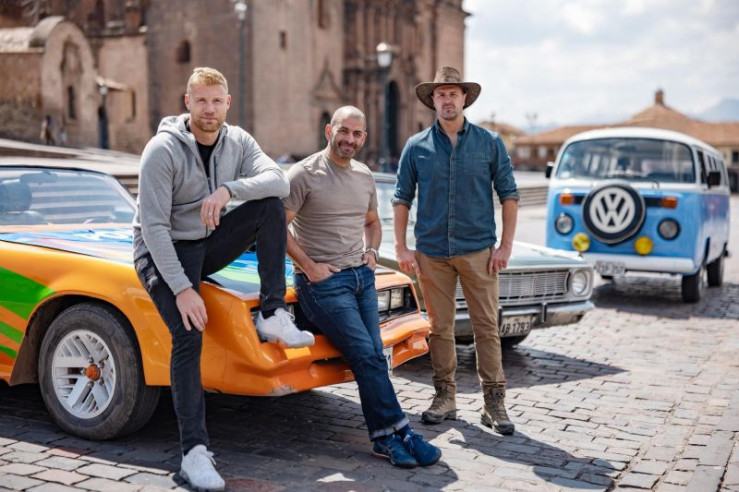 V.l.: Chris Harris, Paddy McGuinness, Freddie Flintoff