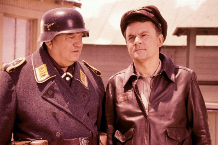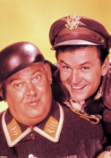 Sgt. Hans Georg Schultz (John Banner, l.), Colonel Robert E. Hogan (Bob Crane)