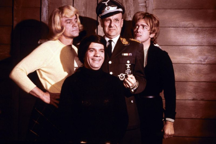 V.l.: Colonel Robert E. Hogan (Bob Crane), Corporal Louis LeBeau (Robert Clary), Colonel Wilhelm Klink (Werner Klemperer), Corporal Peter Newkirk (Richard Dawson)