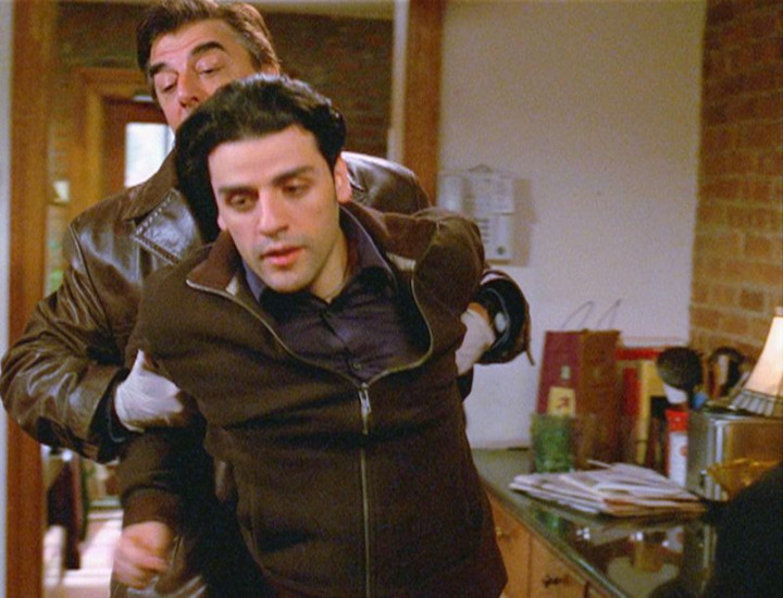 Mike Logan (Chris Noth, hinten) verhaftet den Studenten Robbie (Oscar Isaac). Hat er die Morde tatsächlich begangen? +++ Die Verwendung des sendungsbezogenen Materials ist nur mit dem Hinweis und Verlinkung auf RTL+ gestattet. +++