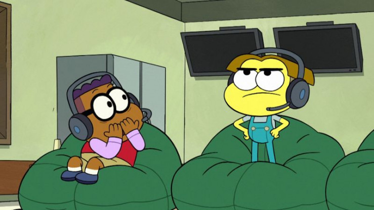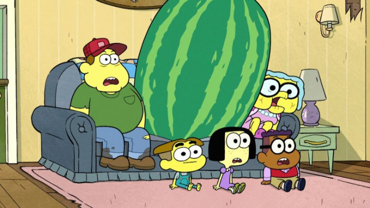 (a) Bill hat eine riesige Wassermelone gezogen, und Cricket lädt den lokalen Fersehsender ein, um von der Megamelone zu berichten. (b) Cricket wehrt sich gegen die Mobbingattacken der Cyber Knights.