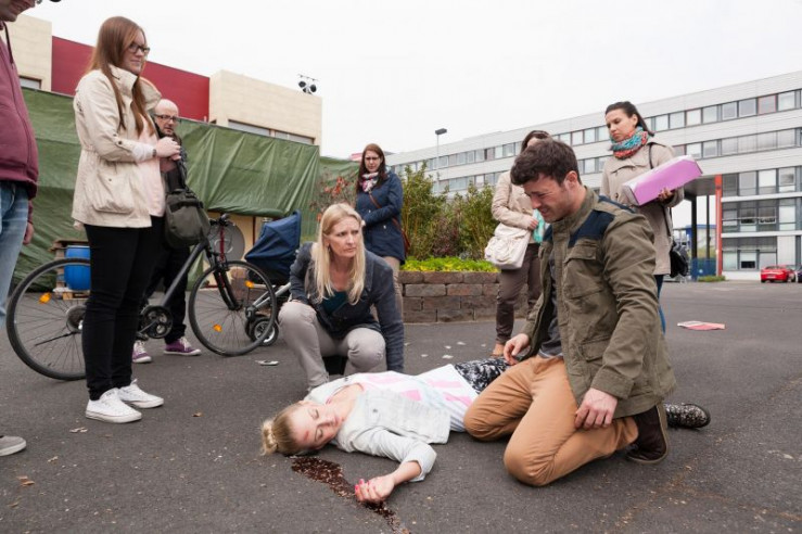 Julia (Jenny Bach) wurde in einem unachtsamen Moment von einem Auto überfahren. +++ Die Verwendung des sendungsbezogenen Materials ist nur mit dem Hinweis und Verlinkung auf RTL+ gestattet. +++