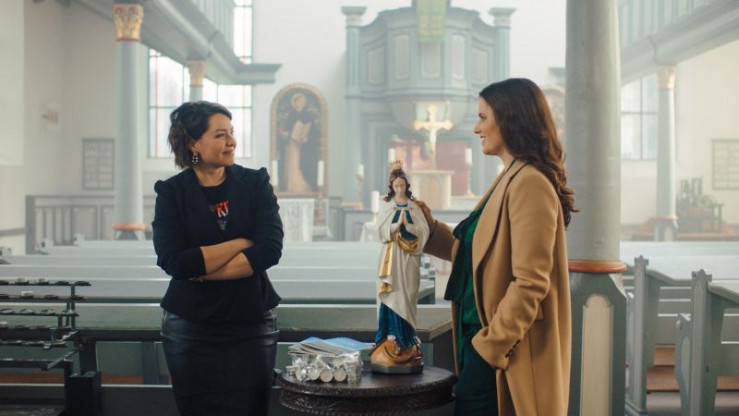 Maik (Daniel Donskoy) und Eva (Bettina Burchard) freuen sich, dass ihr Plan aufgeht. +++ Die Verwendung des sendungsbezogenen Materials ist nur mit dem Hinweis und Verlinkung auf RTL+ gestattet. +++