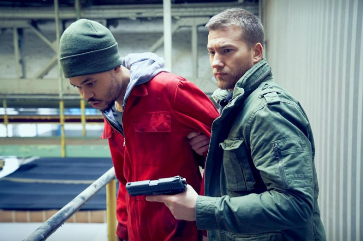 Marc (Christopher Patten, l.) ist in seinem alten Revier in Dortmund. Er und weitere Kollegen müssen sich wegen rassistischem Verhalten im Dienst verantworten. Mo Aguta (Nyamandi Adrian) ist ein Zeuge, den Marc zur Rede stellt, als plötzlich seine Kollegen auftauchen.