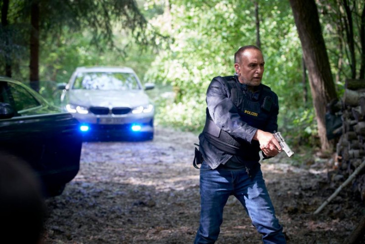 Auf der Suche nach einem Verdächtigen trifft Semir (Erdogan Atalay, Mi.) auf die Postbotin Yvonne (Sophie Pfennigstorf) - plötzlich taucht Simon Domhoff (Ulrich Brandhoff), der Verdächtige, auf. +++ Die Verwendung des sendungsbezogenen Materials ist nur mit dem Hinweis und Verlinkung auf RTL+ gestattet. +++