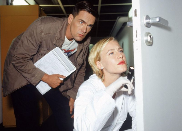 Dr. Duhler (Klaus Schindler) erklärt Staatsanwältin Sturm (Mariella Ahrens) den vermutlichen Tathergang.